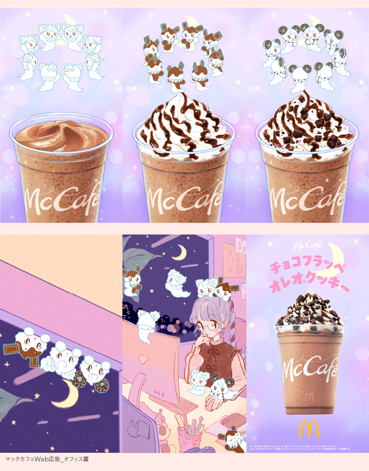 マックカフェ「チョコフラッペオレオクッキー」のWeb広告用イラストをア〜ミ〜が担当しました。